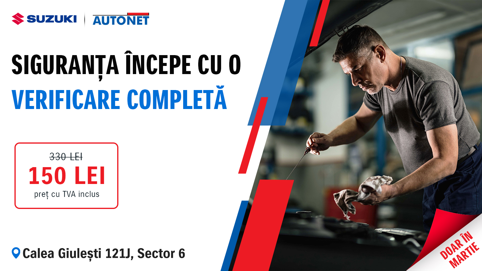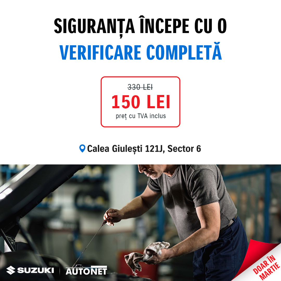 Dacă autoturismul tău Suzuki are peste 3 ani, luna martie este momentul ideal pentru o verificare completă de sezon. O inspecție corectă, realizată la timp, poate preveni defecțiuni costisitoare și îți oferă siguranță la fiecare drum.