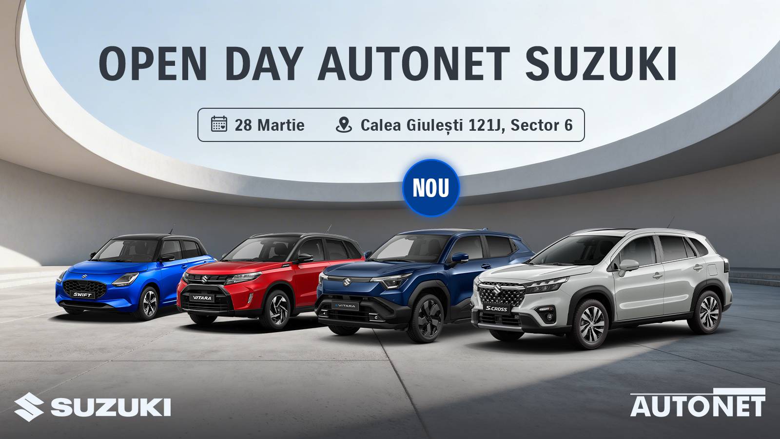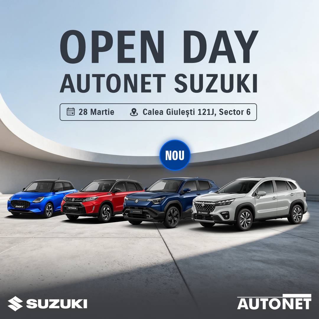 Pe 28 martie, te așteptăm la Autonet Suzuki pentru un eveniment de tip Open Day dedicat comunității noastre, cât și celor care vor să facă următorul pas spre un Suzuki nou. Vino să descoperi modelele disponibile, să le testezi în condiții reale și să primești consiliere completă, într-o atmosferă relaxată, ca între prieteni.